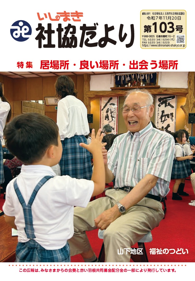 ようこそ社協へ 各拠点のご案内 各拠点のページへ ※詳細は各拠点をタップ 本所のご案内 〒986-0825 宮城県石巻市穀町15番2号 石巻市ささえあいセンター3階 電話番号 0225(96)5290 FAX番号 0225(96)5223 第103号(令和7年11月20日発行) バックナンバー